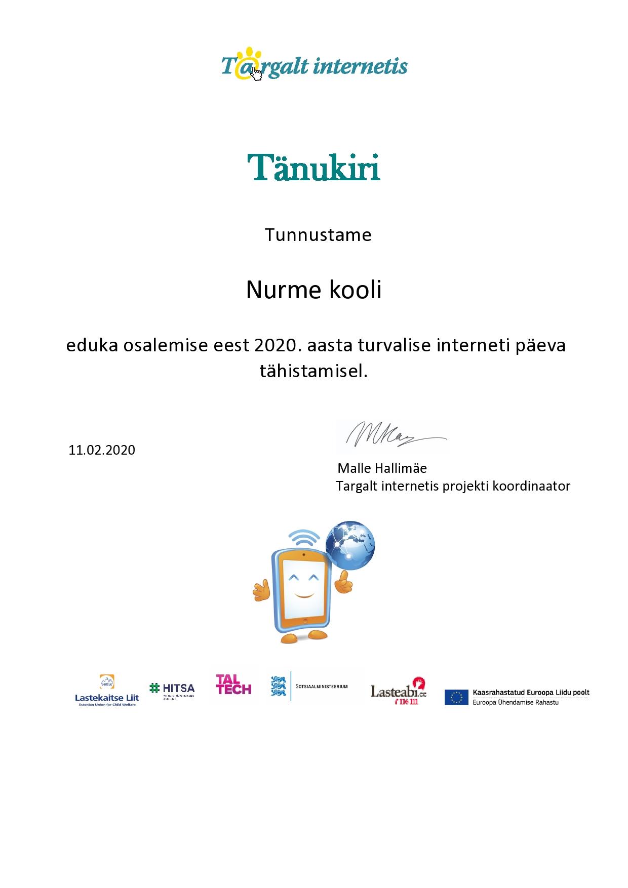 Vanemate klasside õpilastega arutlesime küberkiusamise, turvaliste paroolide kasutamise ja enda kohta avaliku info jagamise üle internetis. Vaatasime teemakohaseid videoid “Targalt internetis” kodulehelt ja lahendasime koos internetiohutuse teste.